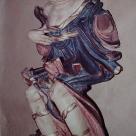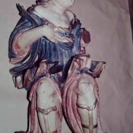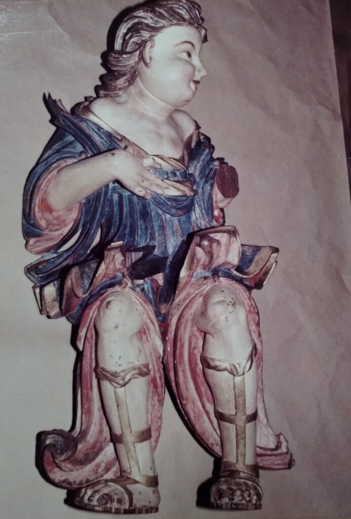 Informações de fichas anteriores: doação do Conde Dejean, embaixador da França; anjo em madeira colorida, talha do século XVIII, vindo de uma capela mor em Minas