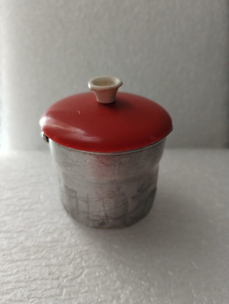 Brinquedo; Leiteira Home Acervo Museológico Brinquedo; Leiteira 310800a Baixar 310800b Baixar 310800a 310800b Número de registro310800DescriçãoLeiteira de brinquedo, em miniatura. Não possui mais alça. Feita em alumínio.DenominaçãoBrinquedo; LeiteiraMaterialalumínioForma de aquisiçãoDoaçãoFonte de aquisiçãoCarla Corrêa PrietoReferência de aquisiçãoProcesso 01438.000142/2019-18Classe07 Lazer/ DesportoTermos de indexaçãoINFÂNCIA | MINI LEITEIRA | MINIATURA | OBJETO LÚDICOAltura (cm)4,0Largura (cm)4,8Comprimento (cm)5,0 Explore mais itens Botao (distintivo)?08 Insígnias Botão12.1 Acessório de Indumentária Clichê tipográfico10.2 Equipamento de Comunicação Escrita Fronha05.1 Acessório de Interiores