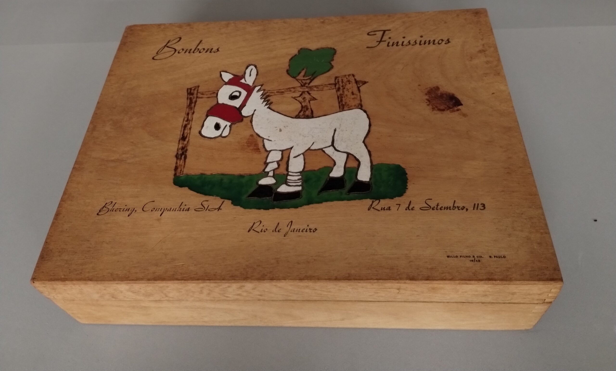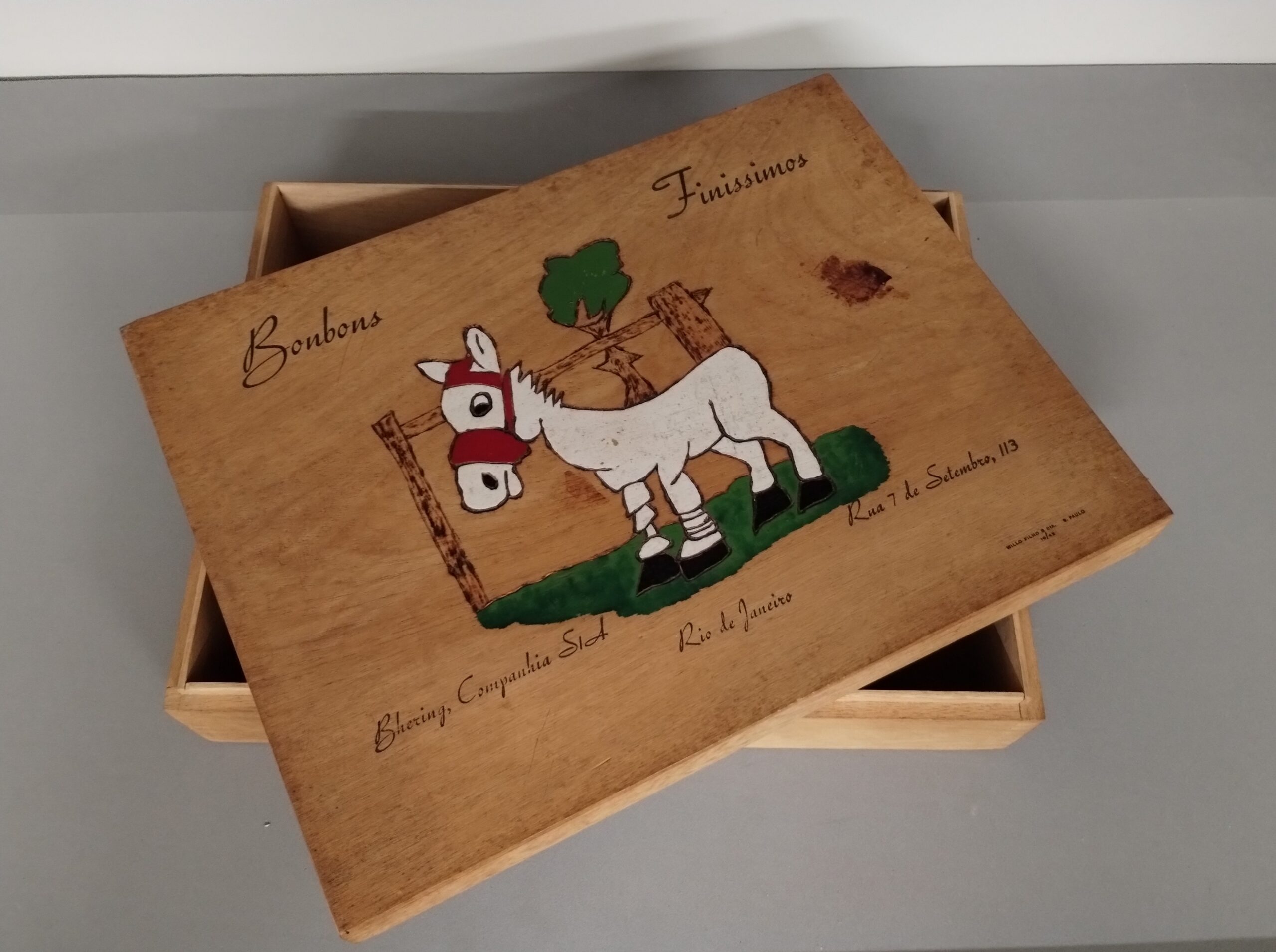 Embalagem de produto: caixa: c Home Acervo Museológico Embalagem de produto: caixa: c 024064 a Baixar 024064 Baixar 024064 b Baixar 024064 c Baixar 024064 a 024064 024064 b 024064 c Número de registro24064Descriçãoinscricao: bombons finissimos - bhering companhia s/a rioDenominaçãoEmbalagem de produto: caixa: cAutorWillo Filho & Cia.MaterialmadeiraForma de aquisiçãoIncorporaçãoFonte de aquisiçãoMuseu Histórico NacionalReferência de aquisiçãoProcesso 01468.000003/1992-38Local de produçãoBrasil - São PauloClasse05 Interiores > 05.6 Utensílio de Cozinha/MesaData de produção199-Termos de indexação - revisar e transferir os termos para o "Termos de indexação"animais. burroAltura (cm)6,60Largura (cm)21,10Comprimento (cm)27,50 Explore mais itens Cadeira de braços05.5 Peça de Mobiliário Botão de propaganda10.5 Material de Propaganda Prato raso05.6 Utensílio de Cozinha/Mesa Brinco12.5 Objeto de Adorno