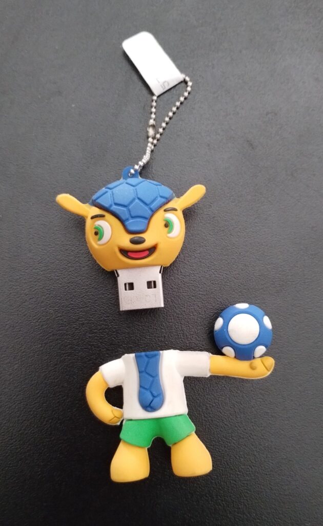 Pen drive Home Acervo Museológico Pen drive 300457a Baixar 300457b Baixar 300457c Baixar 300457a 300457b 300457c Número de registro300457Descriçãopen drive de 4 gb fuleco, no formato do mascote oficial da copa do mundo da fifa 2014. no verso, as inscrições brasil 2014.DenominaçãoPen driveMaterialplásticoForma de aquisiçãoDoaçãoLocal de produçãoBrasilClasse14 Medição/Registro/Observação/Processamento > 14.2 Processador de DadosData de produção2014Termos de indexação - revisar e transferir os termos para o "Termos de indexação"fuleco, fifa, copa do mundo, brasil, futebol, mascote, material de propagandaAltura (cm)6,10Largura (cm)4,30Comprimento (cm)3,00 Explore mais itens Fragata (mista) (modelo de exp11.5 Transporte Marítimo Brinquedo: soldado de chumbo07 Lazer/ Desporto Dragona08 Insígnias Retrato (pintura)02.6 Pintura