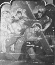 Pintura religiosa Home Acervo Museológico Pintura religiosa 006255 Baixar 006255 Baixar Nair de Moraes Carvalho - Anais MHN 1941 - volume II Baixar 006255 006255 Nair de Moraes Carvalho - Anais MHN 1941 - volume II Número de registro6255DenominaçãoPintura religiosaTítuloJesus cai pela segunda vezAutorNão identificadoTécnicaóleo sobre madeiraMaterialmadeira | óleoForma de aquisiçãoDoaçãoFonte de aquisiçãoJosé MarianoReferência de aquisiçãoAnais do Museu Histórico Nacional - Vol. II (1941)Local de produçãoBrasil - BahiaClasse02 Artes Visuais/Cinematográfica > 02.6 PinturaData de produção17--Termos de indexaçãoARTE COLONIAL | ARTE RELIGIOSA | ARTE SACRA | BAHIA | BRASIL COLÔNIA | CATOLICISMO | IGREJA DA SÉ | JESUS CRISTO | PASSOS DA PAIXAO (R) | PASSOS DA PAIXÃO DE CRISTO | PASSOS DA VIA SACRA (R) | PINTURA COLONIAL | PINTURA RELIGIOSA | RELIGIÃO | RELIGIÃO CATÓLICA | SALVADOR | VIA SACRAAltura (cm)175,80Largura (cm)147,80Referências expográficasExposição “Coleções em diálogo: Museu Histórico Nacional e Pinacoteca de São Paulo”, Pinacoteca de São Paulo/SP, 06 de outubro de 2018 a 28 de janeiro de 2019.Referências bibliográficasCARVALHO, Nair de Moraes. Os painéis dos antigos Passos da Baía. In: "Anais do MHN", v. II, 1941, p. 138-152. Explore mais itens Brinquedo: soldado07 Lazer/ Desporto Caneta10.2 Equipamento de Comunicação Escrita Botão12.1 Acessório de Indumentária Colher de servir05.6 Utensílio de Cozinha/Mesa