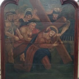Pintura religiosa Home Acervo Museológico Pintura religiosa 006255 aa Baixar 006255 Baixar 006255 Baixar Nair de Moraes Carvalho - Anais MHN 1941 - volume II Baixar 006255 aa 006255 006255 Nair de Moraes Carvalho - Anais MHN 1941 - volume II Número de registro6255DenominaçãoPintura religiosaTítuloJesus cai pela segunda vezAutorNão identificadoTécnicaóleo sobre madeiraMaterialmadeira | óleoForma de aquisiçãoDoaçãoFonte de aquisiçãoJosé MarianoReferência de aquisiçãoAnais do Museu Histórico Nacional - Vol. II (1941)Local de produçãoBrasil - BahiaClasse02 Artes Visuais/Cinematográfica > 02.6 PinturaData de produção17--Termos de indexaçãoARTE COLONIAL | ARTE RELIGIOSA | ARTE SACRA | BAHIA | BRASIL COLÔNIA | CATOLICISMO | IGREJA DA SÉ | JESUS CRISTO | PASSOS DA PAIXAO (R) | PASSOS DA PAIXÃO DE CRISTO | PASSOS DA VIA SACRA (R) | PINTURA COLONIAL | PINTURA RELIGIOSA | RELIGIÃO | RELIGIÃO CATÓLICA | SALVADOR | VIA SACRAAltura (cm)175,80Largura (cm)147,80Referências expográficasExposição “Coleções em diálogo: Museu Histórico Nacional e Pinacoteca de São Paulo”, Pinacoteca de São Paulo/SP, 06 de outubro de 2018 a 28 de janeiro de 2019.Referências bibliográficasCARVALHO, Nair de Moraes. Os painéis dos antigos Passos da Baía. In: "Anais do MHN", v. II, 1941, p. 138-152. Explore mais itens Lápis10.5 Material de Propaganda Embalagem de produto: lata15 Embalagens/Recipientes Porta-bloco10.2 Equipamento de Comunicação Escrita Liteira11.6 Transporte Terrestre