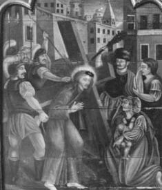 Pintura religiosa Home Acervo Museológico Pintura religiosa 006257 Baixar 006257 Baixar Nair de Moraes Carvalho - Anais MHN 1941 - volume II Baixar 006257 006257 Nair de Moraes Carvalho - Anais MHN 1941 - volume II Número de registro6257DenominaçãoPintura religiosaTítuloJesus encontra as mulheres de JerusalémAutorNão identificadoTécnicaóleo sobre madeiraMaterialmadeira | óleoForma de aquisiçãoDoaçãoFonte de aquisiçãoJosé MarianoReferência de aquisiçãoAnais do Museu Histórico Nacional - Vol. II (1941)Local de produçãoBrasil - BahiaClasse02 Artes Visuais/Cinematográfica > 02.6 PinturaData de produção17--Termos de indexaçãoARTE COLONIAL | ARTE RELIGIOSA | ARTE SACRA | BAHIA | BRASIL COLÔNIA | CATOLICISMO | IGREJA DA SÉ | JESUS CRISTO | PASSOS DA PAIXAO (R) | PASSOS DA PAIXÃO DE CRISTO | PASSOS DA VIA SACRA (R) | PINTURA COLONIAL | PINTURA RELIGIOSA | RELIGIÃO | RELIGIÃO CATÓLICA | SALVADOR | VIA SACRAAltura (cm)195,00Largura (cm)148,60Referências bibliográficasCARVALHO, Nair de Moraes. Os painéis dos antigos Passos da Baía. In: "Anais do MHN", v. II, 1941, p. 138-152. Explore mais itens Projétil01.4 Munição e Acessório Vestido12.8 Peça de Indumentária Crucifixo02.3 Escultura Pintura alegórica02.6 Pintura