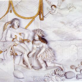 Relevo alegórico Home Acervo Museológico Relevo alegórico 000315a Baixar 000315-1 Baixar 000315a 000315-1 Número de registro315DescriçãoA imagem mostra a América, representada na figura de uma índia, colocando-se aos pés da casa portuguesa, na figura de D. João, sentado em um trono. as frutas representam as riquezas do continente.DenominaçãoRelevo alegóricoTítuloD. João, príncipe regenteTécnicaescultura | pinturaMaterialalabastroFonte de aquisiçãoMuseu NacionalLocal de produçãoEm pesquisaClasse02 Artes Visuais/Cinematográfica > 02.3 EsculturaData de produção[18--]Termos de indexação - revisar e transferir os termos para o "Termos de indexação"02.3.10, joão, príncipe regente, transmigração da corte, frutos, anjos, índio (r), joão viAltura (cm)47,30Largura (cm)59,80Referências expográficasExposição "D. João VI: um rei aclamado na América", Museu Histórico Nacional/RJ, de 10 de setembro a 31 de outubro de 1999 | Exposição "Entre Mundos" | Exposição "Portugueses no mundo" | Exposição "Um novo mundo, um novo império: a Corte Portuguesa no Brasil". Museu Histórico Nacional, de 07 de março a 08 de junho de 2008 | Exposição “D. João VI no Brasil – um rei aclamado na América”, Palácio da Ajuda, Lisboa, Portugal, 13 de maio a 31 de julho de 1999Referências bibliográficasCatálogo da exposição "D. João VI: um rei aclamado na América". Rio de Janeiro : Museu Histórico Nacional, 1999 | Catálogo da exposição "Um novo mundo, um novo império: a Corte Portuguesa no Brasil". Rio de Janeiro : Museu Histórico Nacional, 2008 Explore mais itens Garrafa05.6 Utensílio de Cozinha/Mesa Tinteiro10.2 Equipamento de Comunicação Escrita Prato de sobremesa05.6 Utensílio de Cozinha/Mesa Ficha de jogo07 Lazer/ Desporto