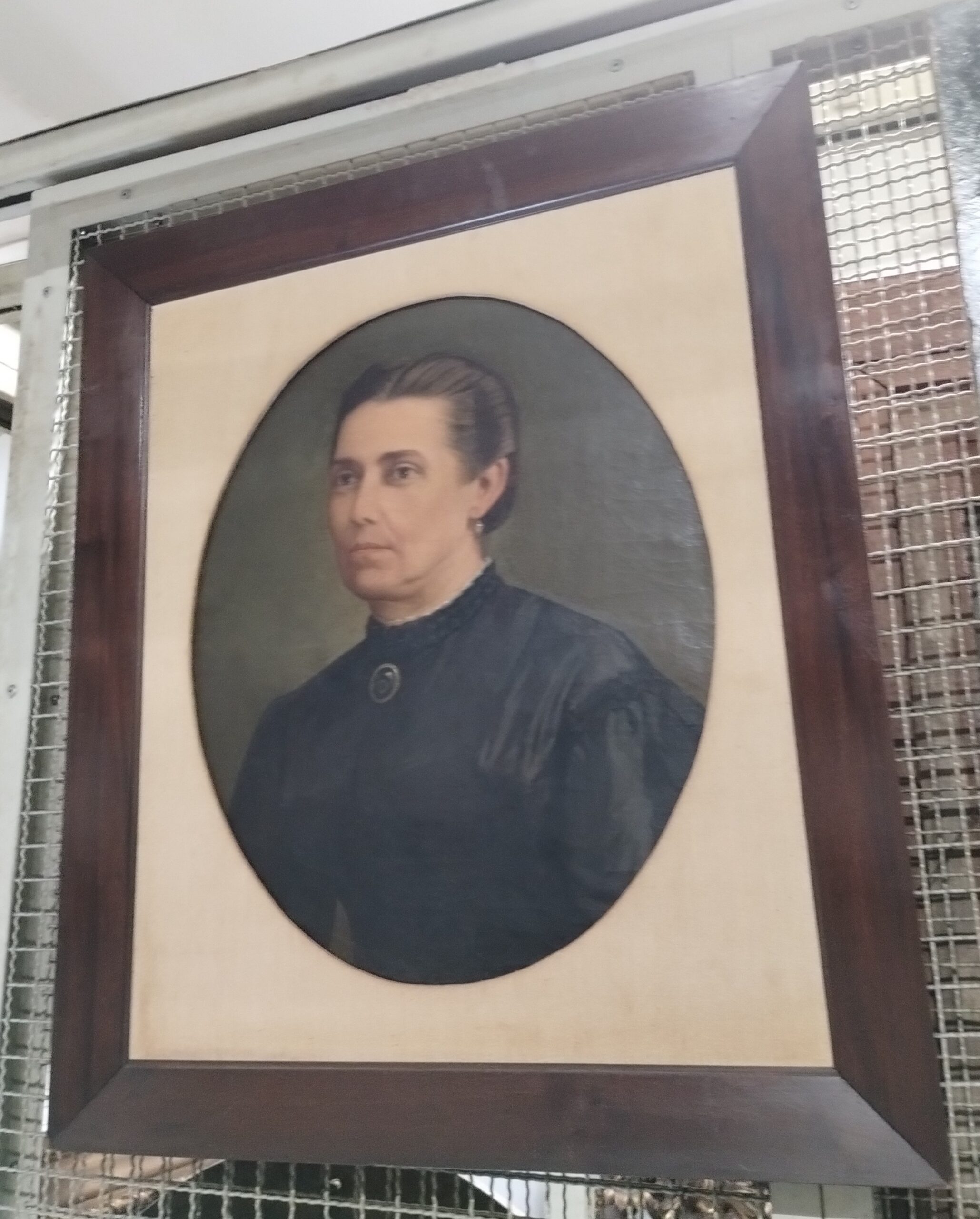 Retrato (pintura) Home Acervo Museológico Retrato (pintura) 030869 Baixar Número de registro30869DescriçãoRetrato de D. Maria Anna Paes Barreto Soares Brandão a meio corpo, 3/4; olhando à esquerda; cabelos negros presos em coque, traja vestido preto de gola alta.DenominaçãoRetrato (pintura)TítuloMaria Anna Paes Barreto Soares BrandãoAutorDesconhecidoTécnicaóleo sobre telaMaterialóleo | telaForma de aquisiçãoDoaçãoFonte de aquisiçãoCarlos Soares BrandãoReferência de aquisiçãoProcesso 01468.000046/94-02Local de produçãoBrasilClasse02 Artes Visuais/Cinematográfica > 02.6 PinturaData de produção18--Termos de indexaçãoD MARIA ANNA PAES BARRETO SOARES BRANDÃO | RETRATOAltura (cm)87,00Largura (cm)78,00 Explore mais itens Espartilho (réplica)12.8 Peça de Indumentária Brinquedo07 Lazer/ Desporto Camisola12.8 Peça de Indumentária Corpete feminino12.8 Peça de Indumentária